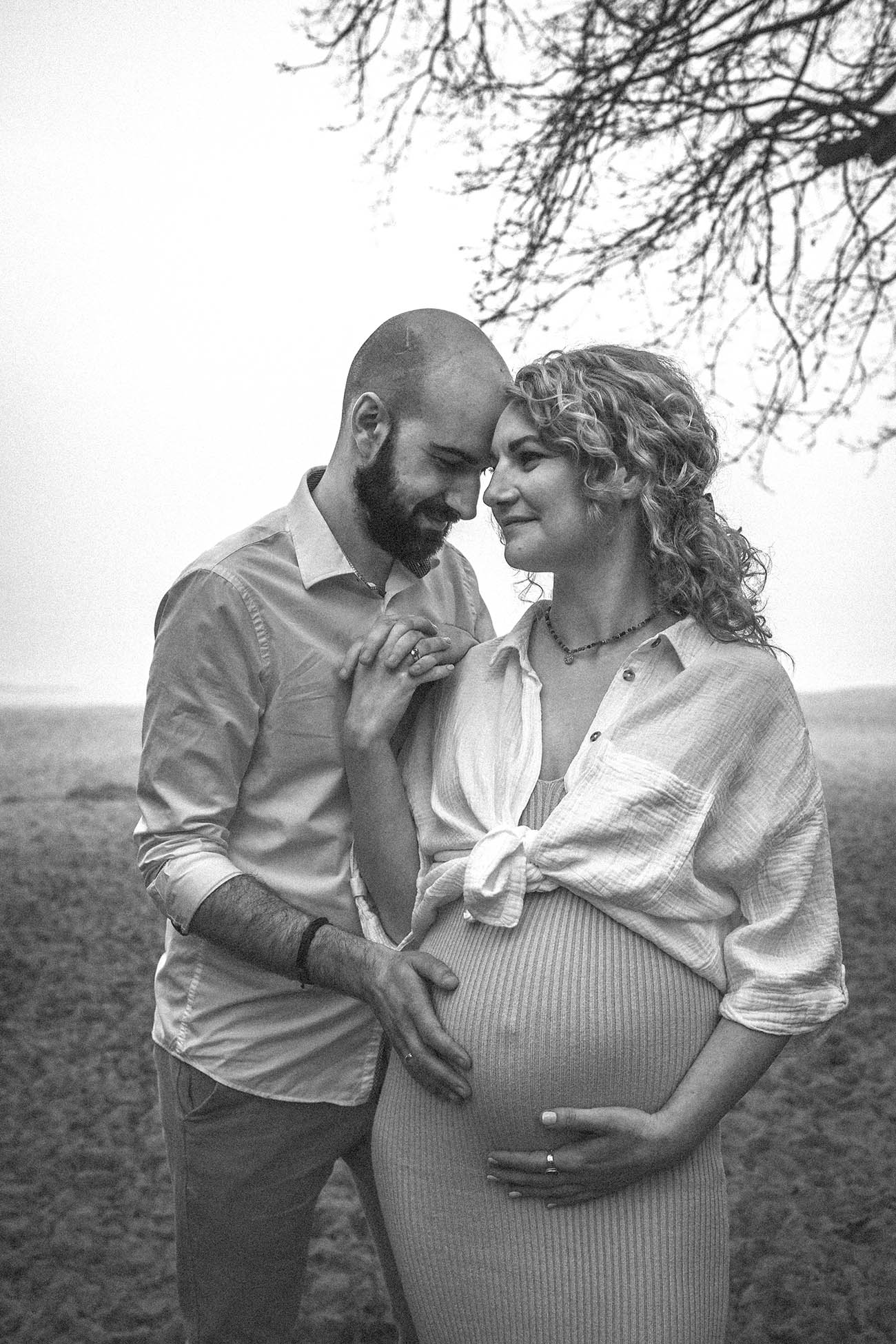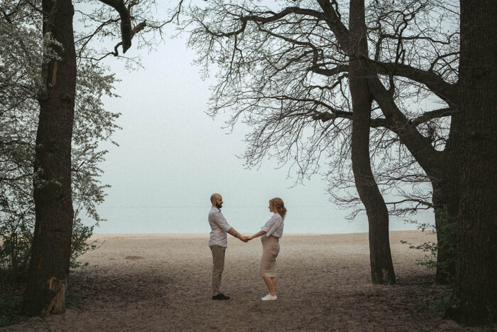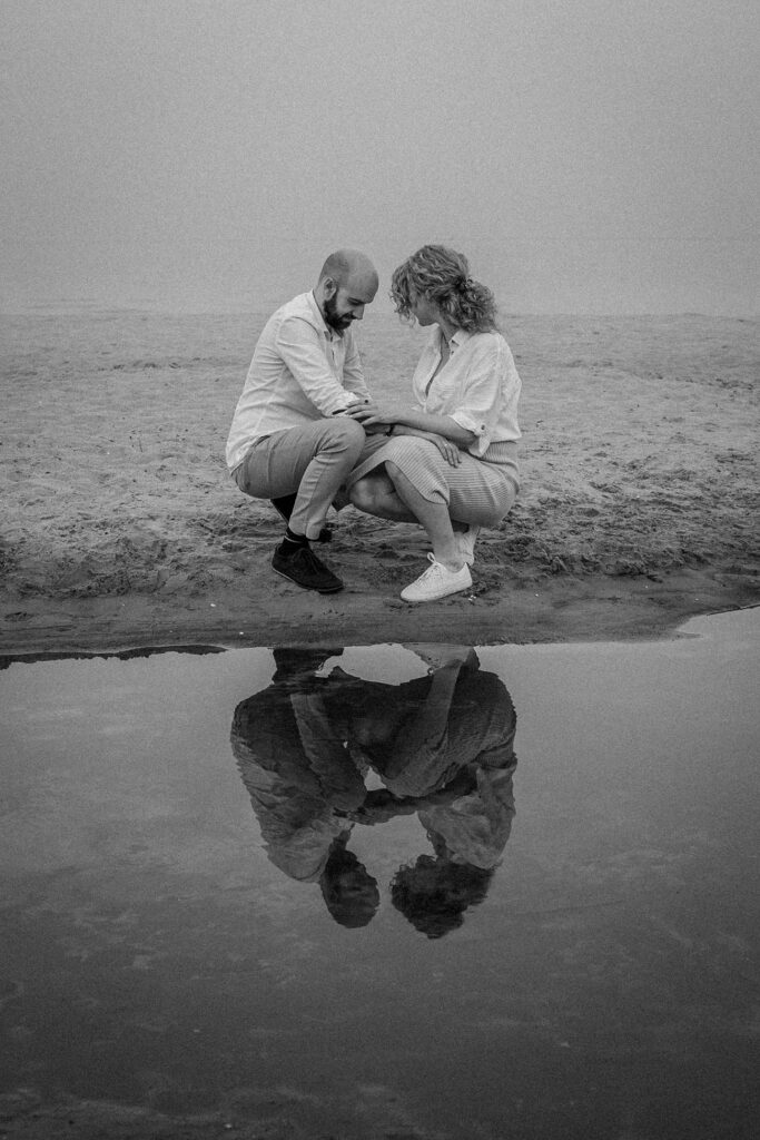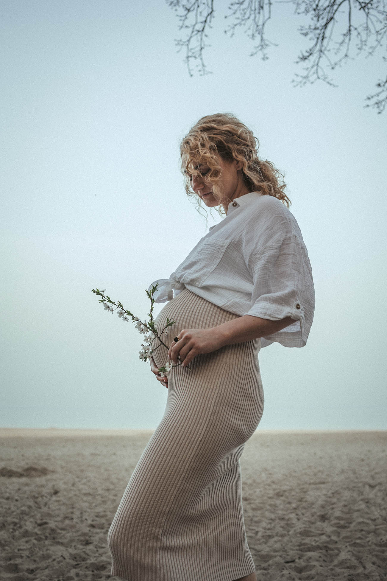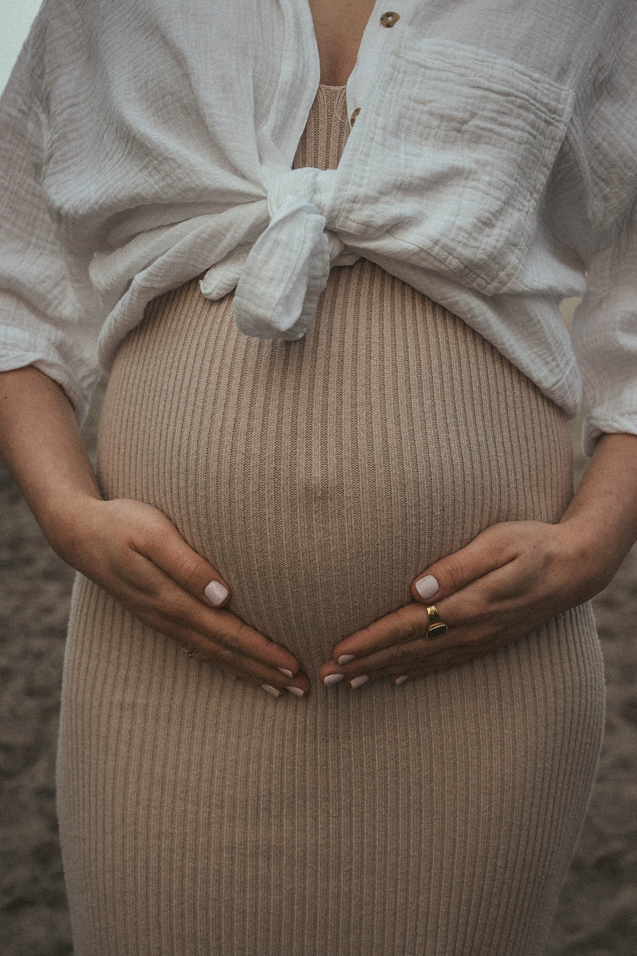 Sesja zdjęciowa rozpoczęła się od klasycznych brzuszkowych ujęć, a następnie przeszliśmy się na plażę. Wszystkim spodobał się pomysł wykorzystania odbicia w tafli wody, które sprawiło, że ciążowe ujęcia wydają się jeszcze ciekawsze. Nie trafiliśmy na romantyczny zachód słońca, ale to nie przeszkodziło parze w okazywaniu uczuć i dobrej zabawie. Luźna atmosfera sprawiła, że postanowili nawet zatańczyć nad brzegiem morza!